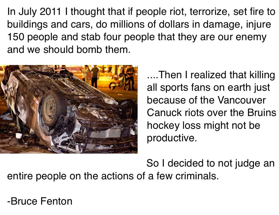 ….Then I realized that killing all sports fans on earth just because of the Vancouver Canuck riots over the Bruins hockey loss might not be productive.